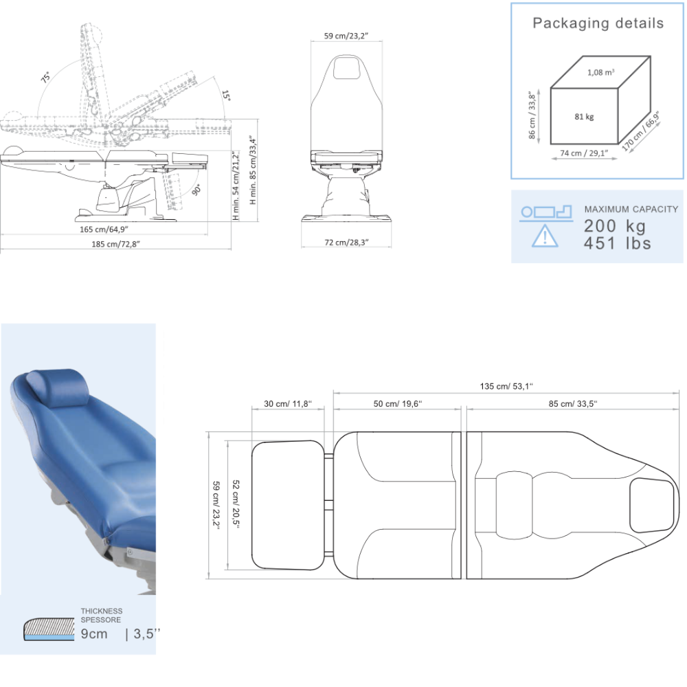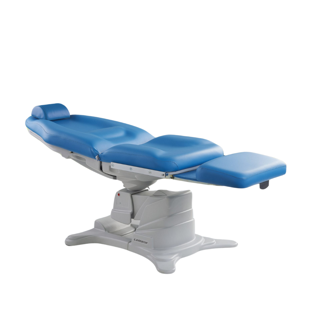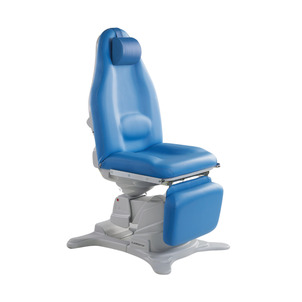 The Infinium LeMans P180 is a medical procedure and minor surgery chair that is equipped with high-performance and silent electronics and a practical standard foot pedal control. The shape of the backrest is designed to approach the patient face. The removable headrest is flexible and available in multiple styles. The caster base helps with cleaning and disinfection of medical environments and the base size is suitable also for small rooms.